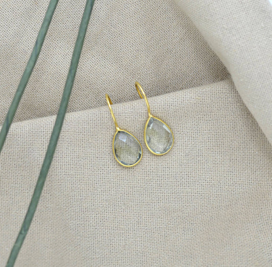 Boucle d'oreille en forme de larme en or et argent 925 - Améthyste verte