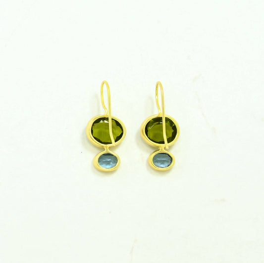 Boucles d'oreilles Primrose plaquées or - Tourmaline verte et Iolite