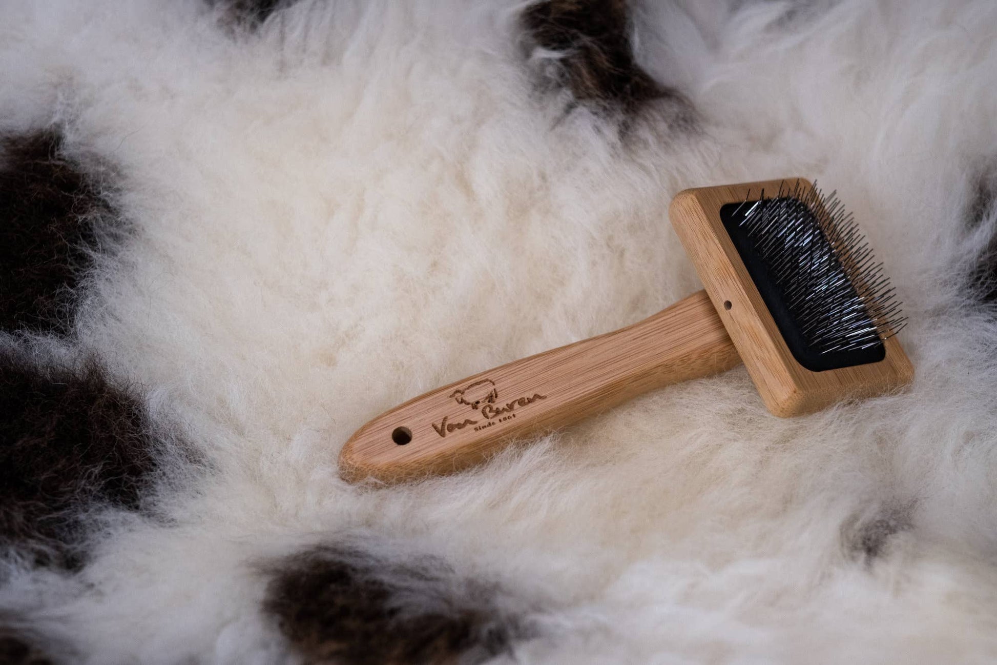 Une brosse pour entretenir les toisons de mouton. Peignez régulièrement la toison pour en profiter le plus longtemps possible.