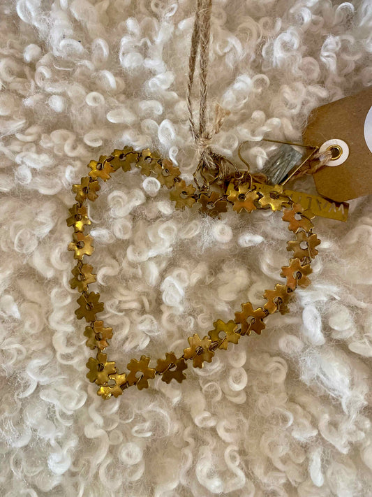 El corazón colgante de flores doradas