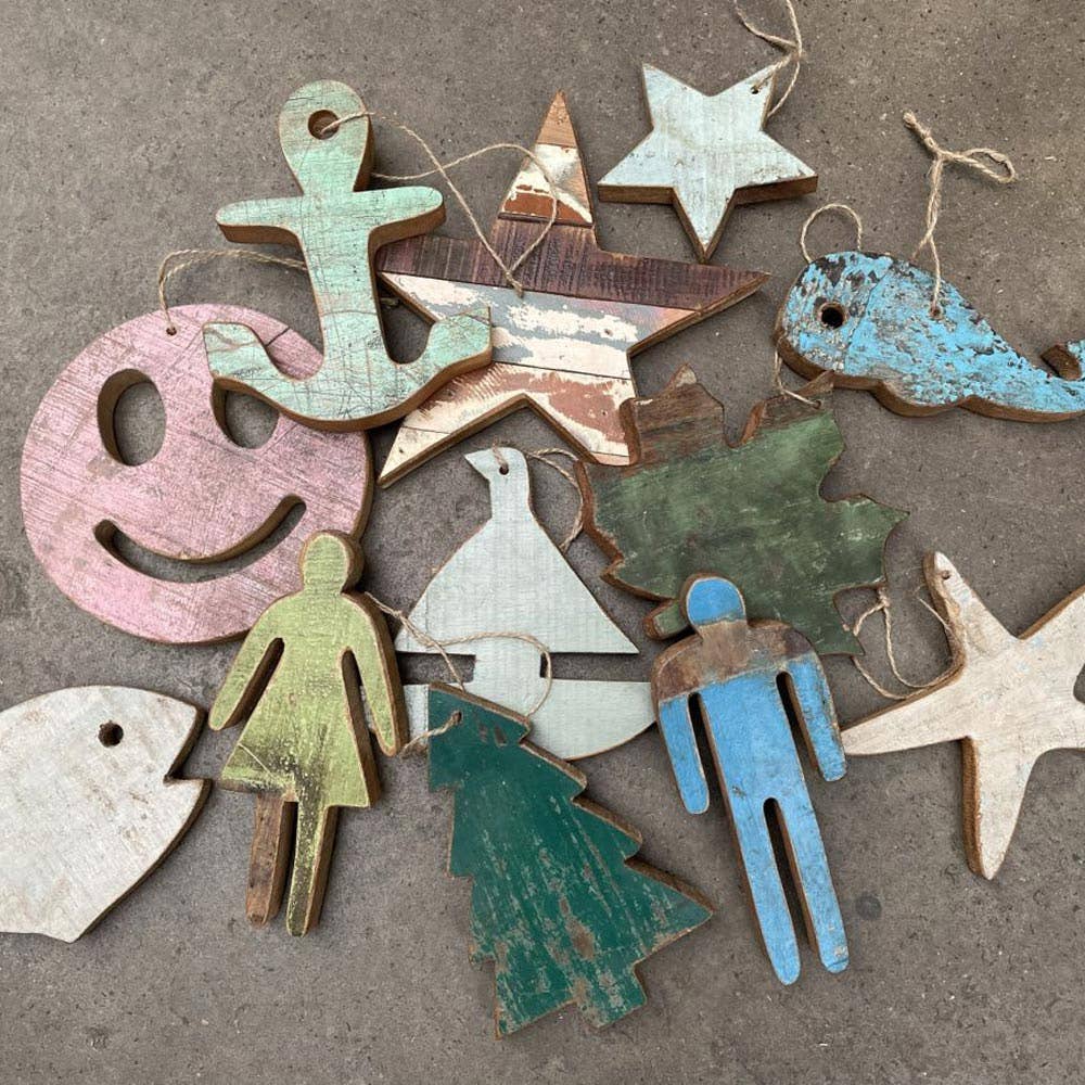 Différents signes et motifs à accrocher. Fabriqué à partir de vieux bois avec de la vieille peinture dessus.